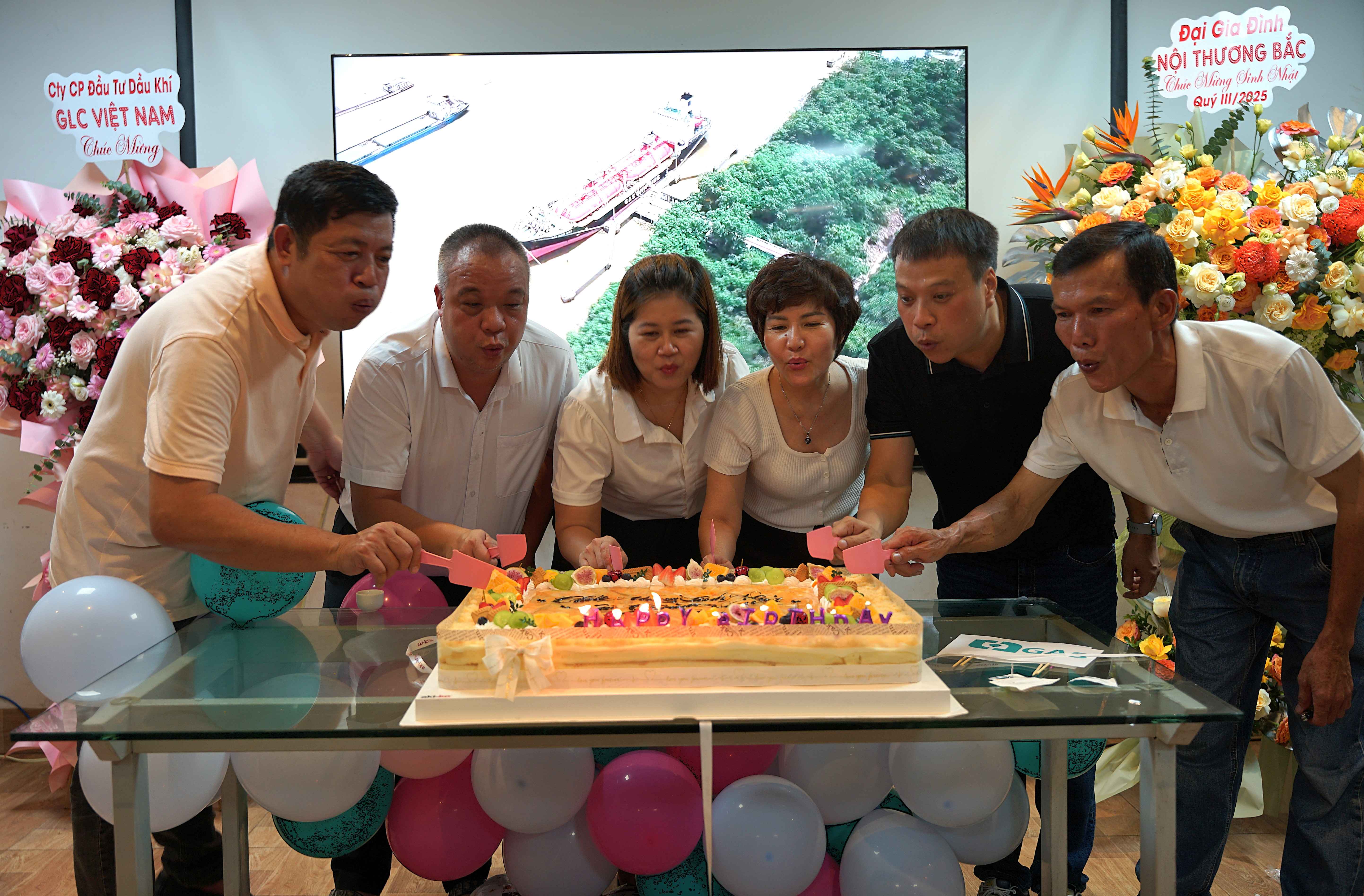 Sau màn cắt bánh sinh nhật “siêu to khổng lồ” lần lượt các thành viên được BLĐ Noithuongbac tặng hoa, quà sinh nhật cùng những lời chúc vui nhộn và màn Karaoke cây nhà lá vườn đầy cảm xúc.